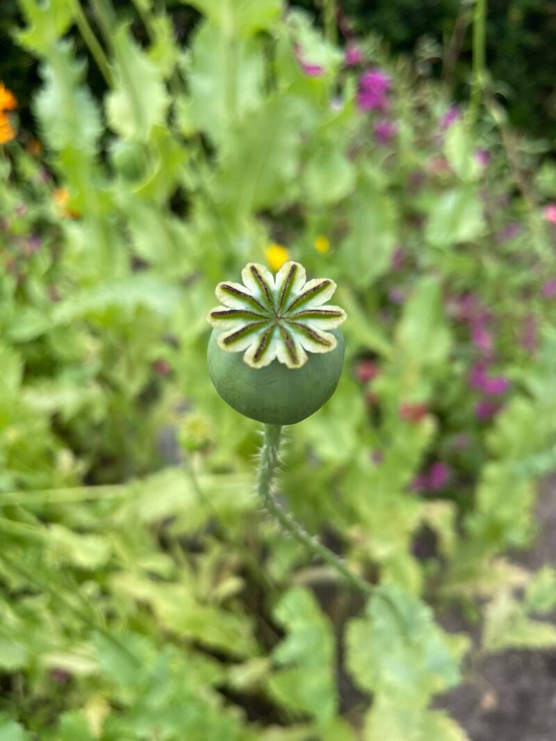 De zaadbol ( zie foto) blijft na de korte bloei over. Deze kun je mooi drogen en gebruiken in je boeket of krans.