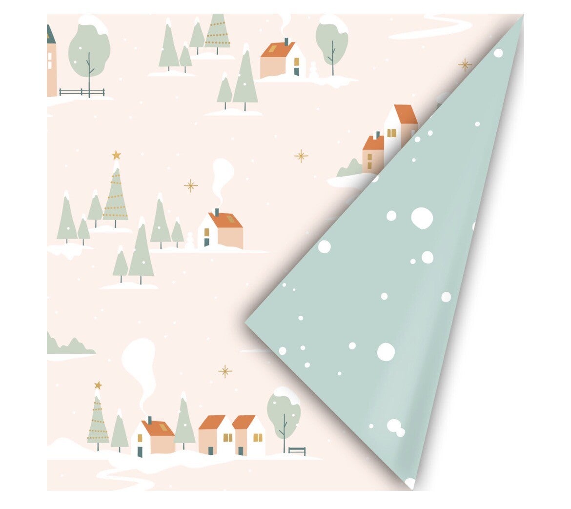 Dit cadeaupapier spreekt tot de verbeelding en is knus. De gouden details in dit dessin zorgen voor een mooie glinstering. En daardoor lijkt het net of er licht in de huisjes brand.