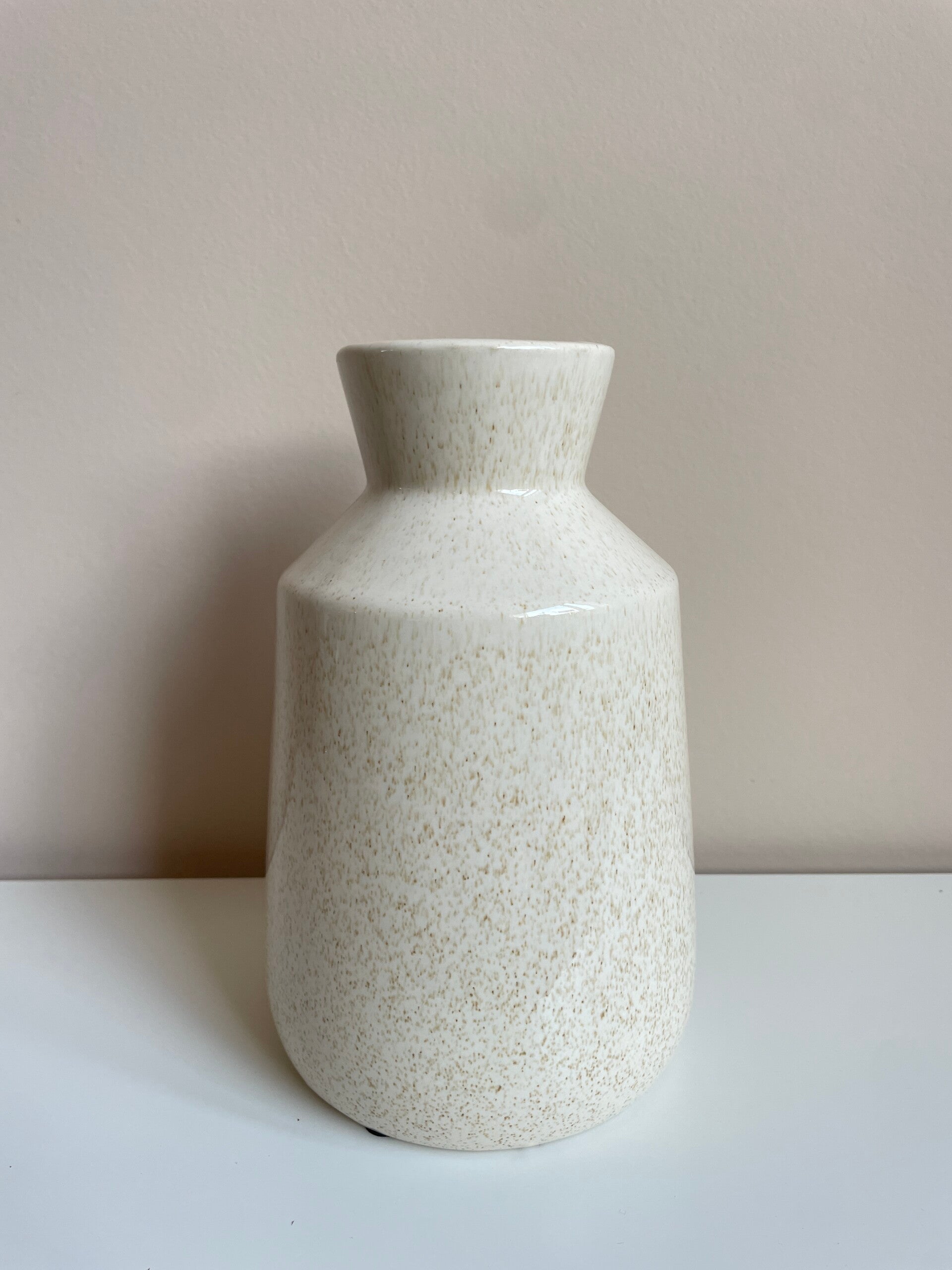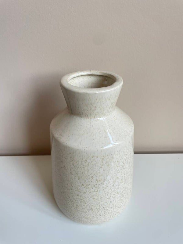 De kleinste vaas uit de serie spikkel beige.