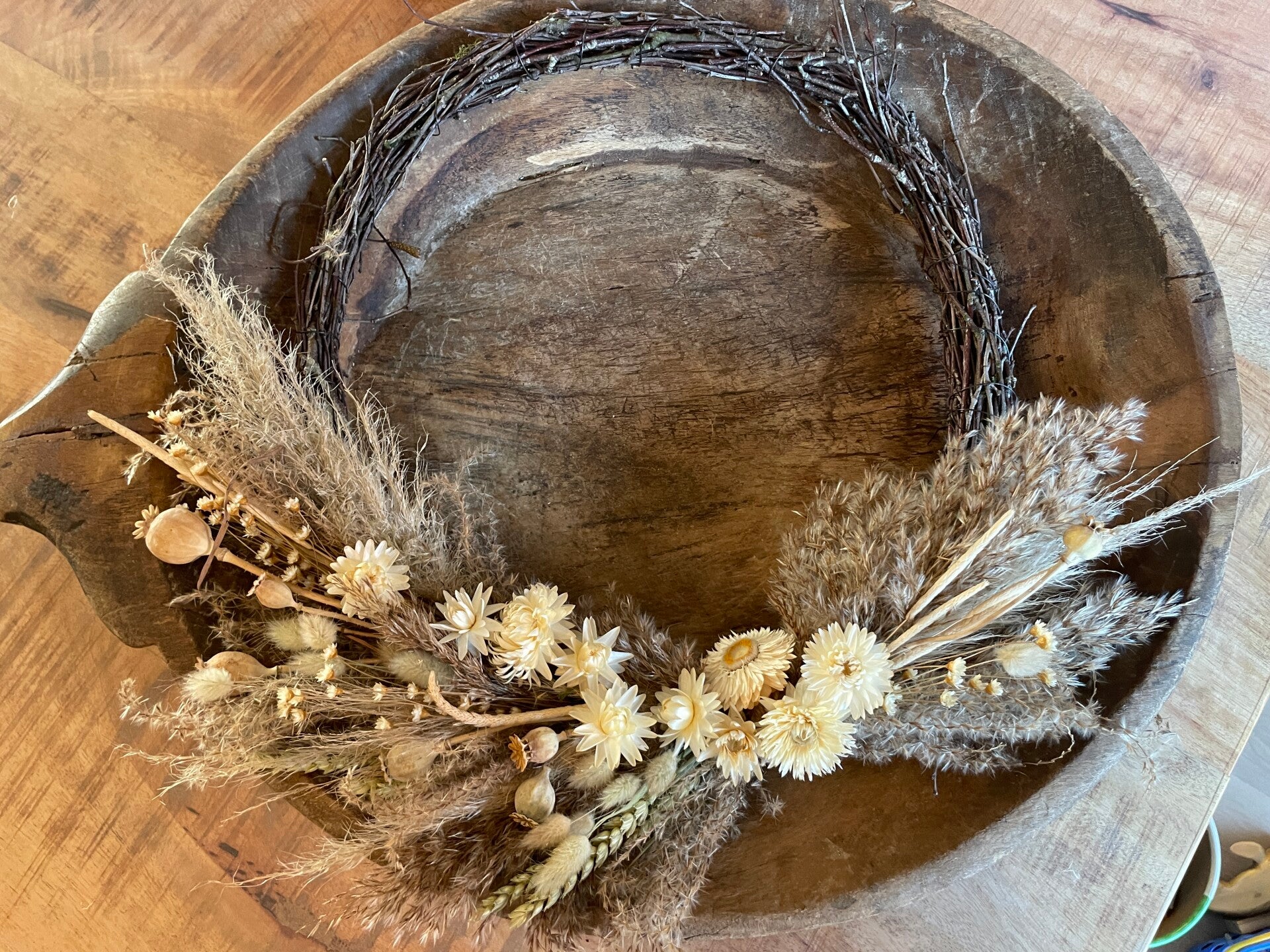 Deze prachtige handgemaakte kransen zijn uniek! De krans zelf is gemaakt van berkentakken van een boom uit eigen tuin. De biologische droogbloemen die zijn met veel liefde gezaaid, geoogst en gedroogd door mijzelf.