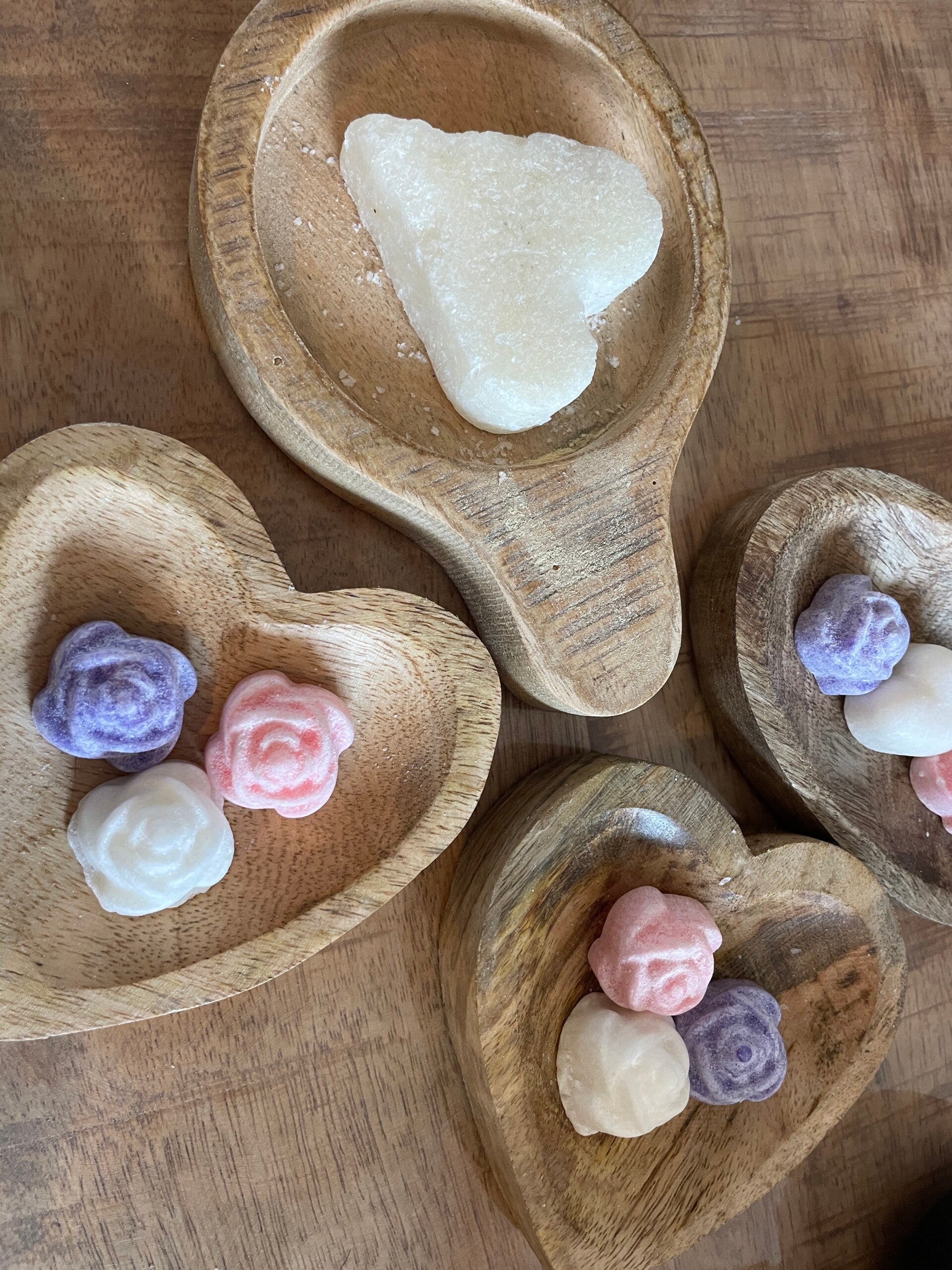Houten bakje met hart amberblok
