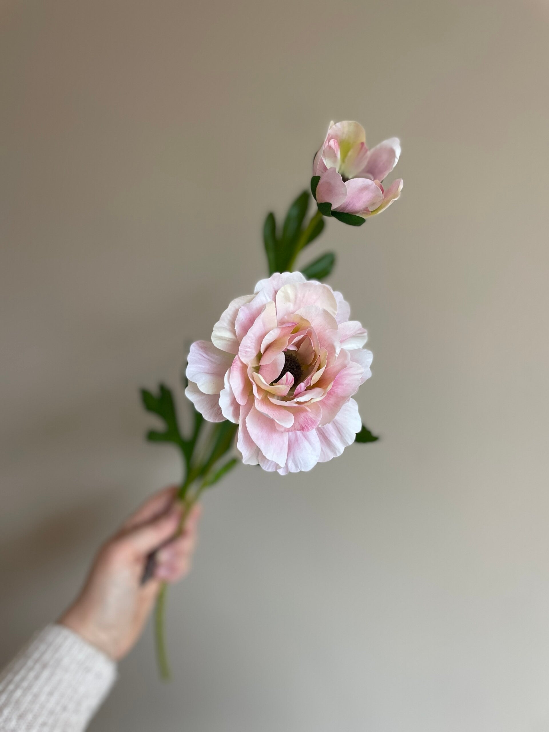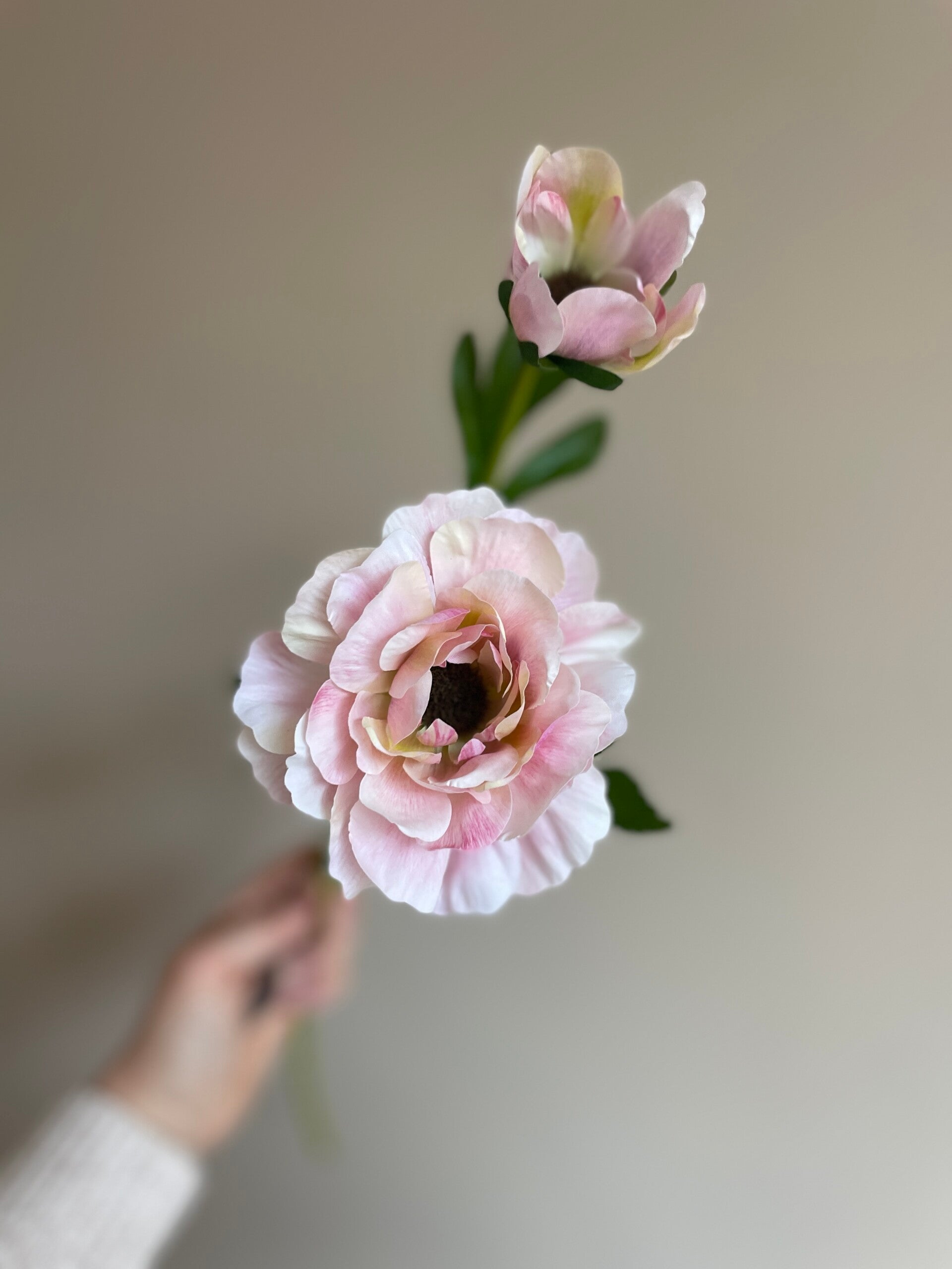 Een hele mooie bloem deze ranonkel. De kleur is lichtroze