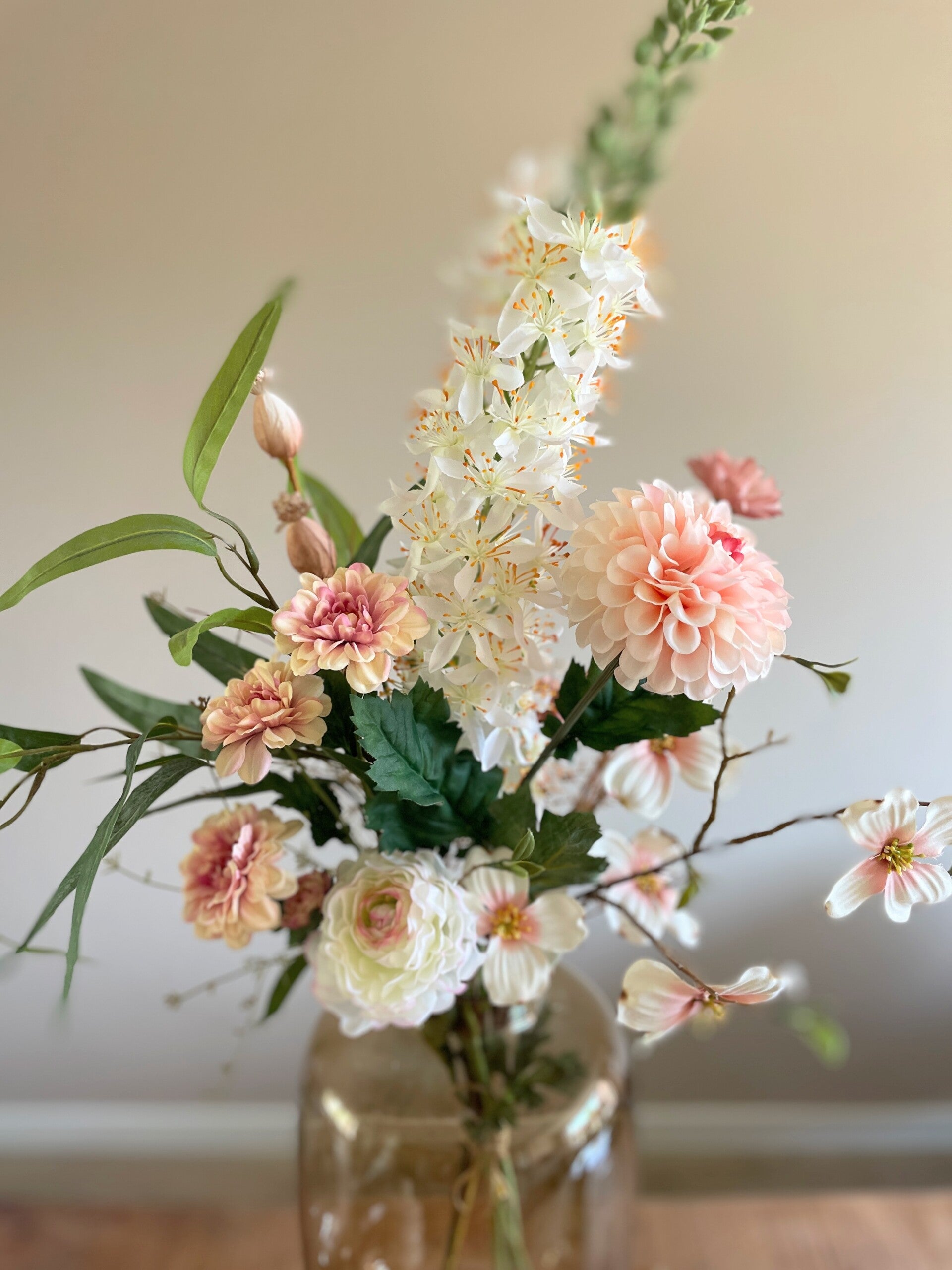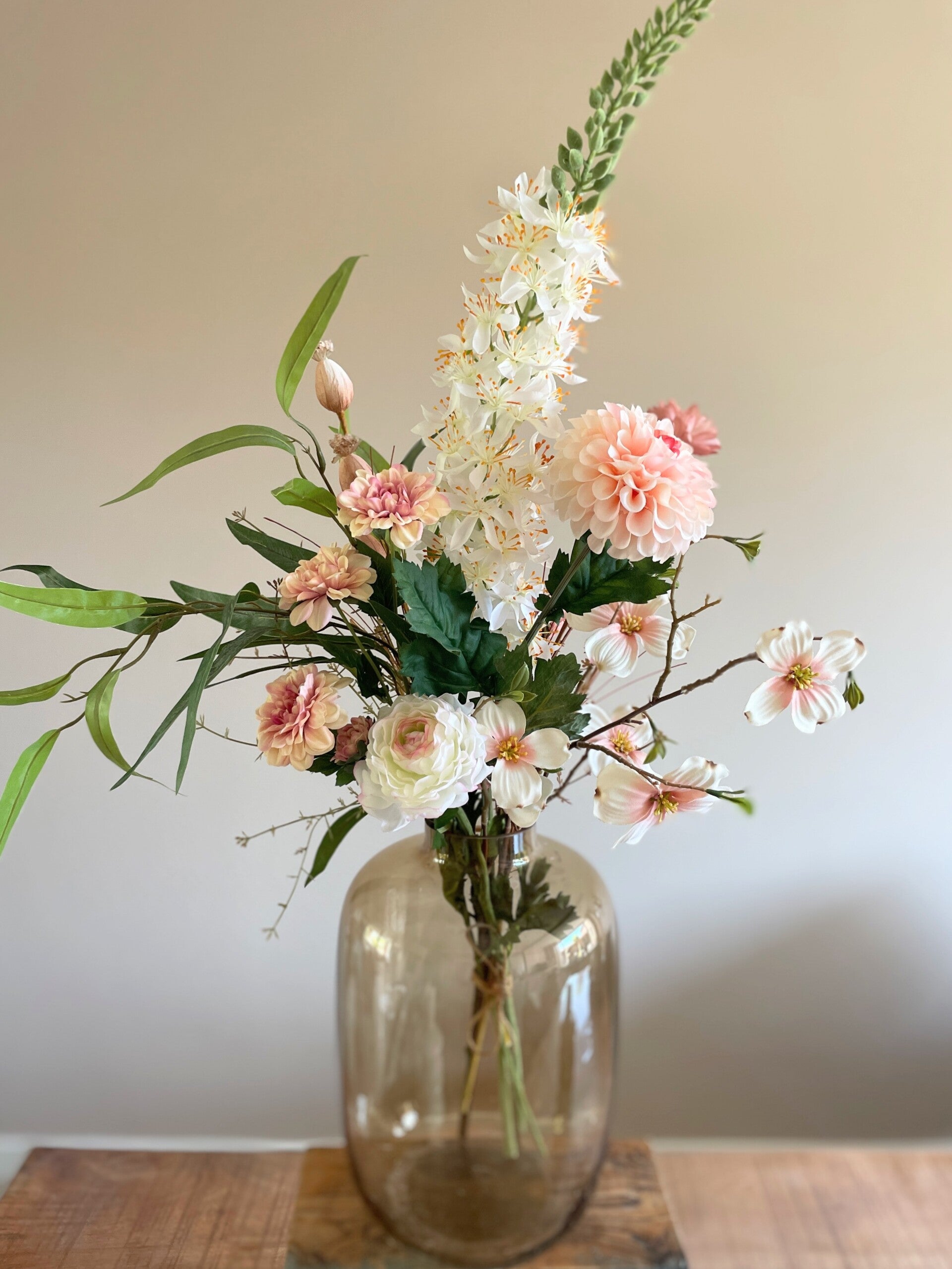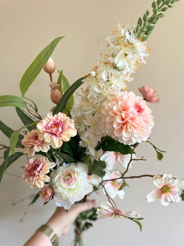Een erg mooi boeket met bloemen die bijna echt lijken! Een duurzame keuze en een keuze waar je lang plezier van hebt is dit boeket wel. Met de rustige tinten past het in elk interieur.