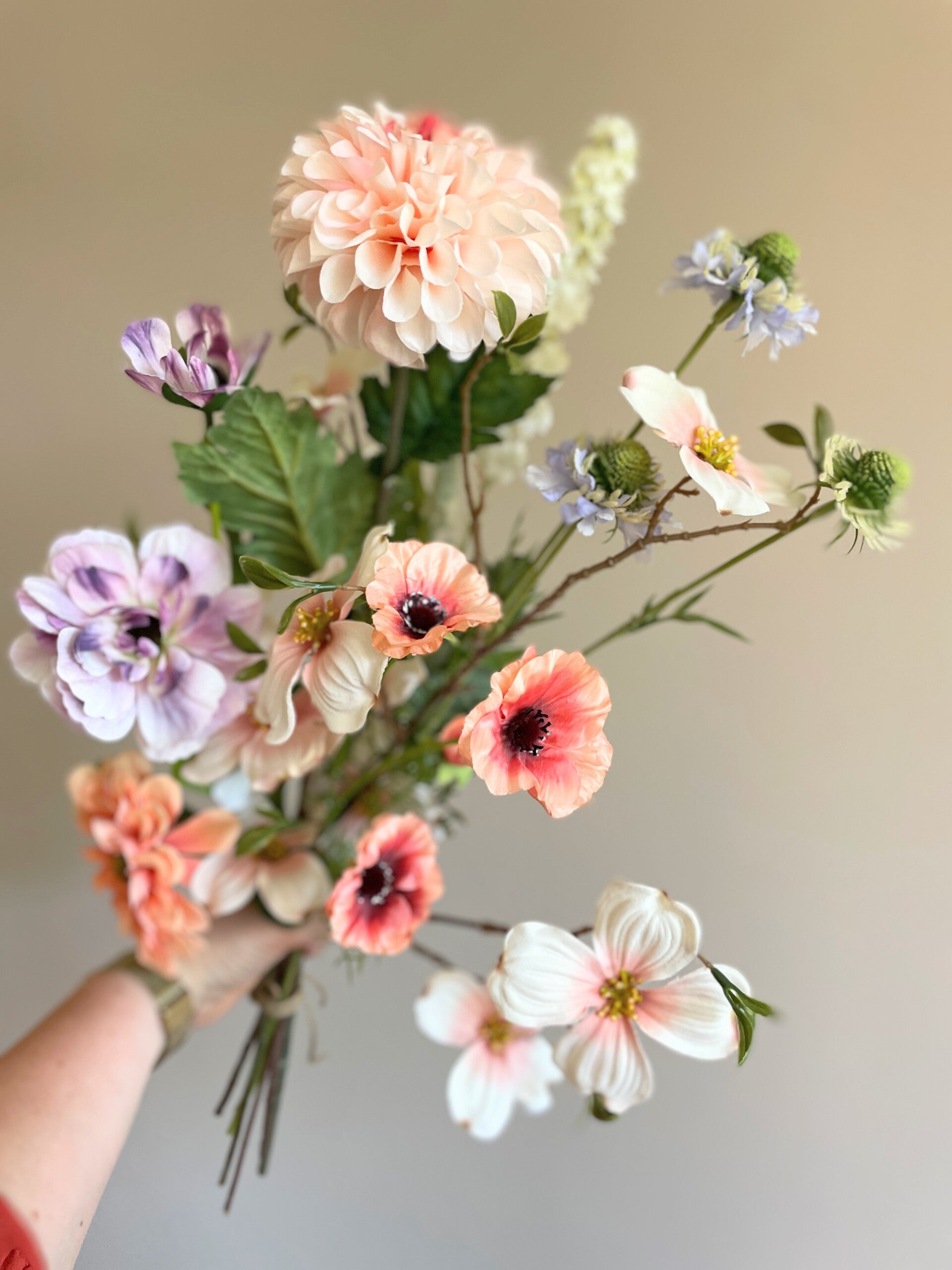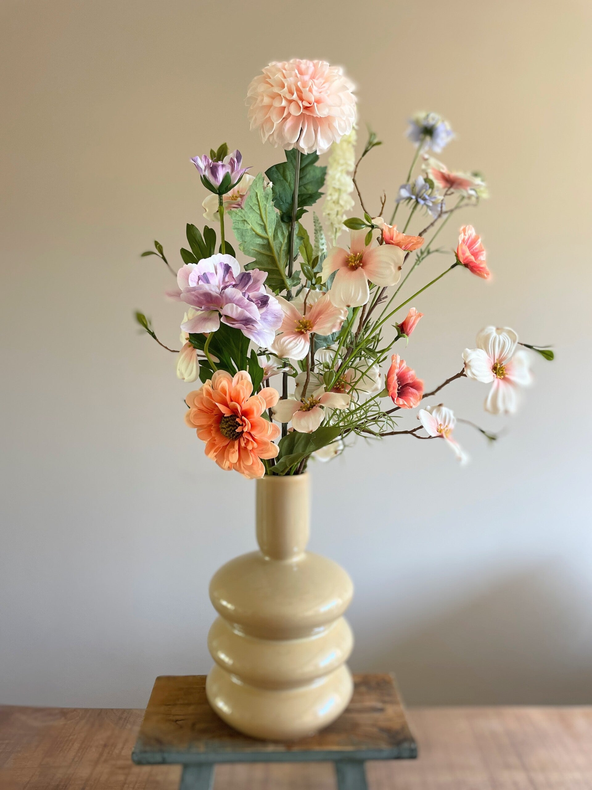 Een boeket waar je alleen maar van kan genieten. Deze kleuren zijn echt prachtig! De bloemen lijken zo uit de tuin te komen.