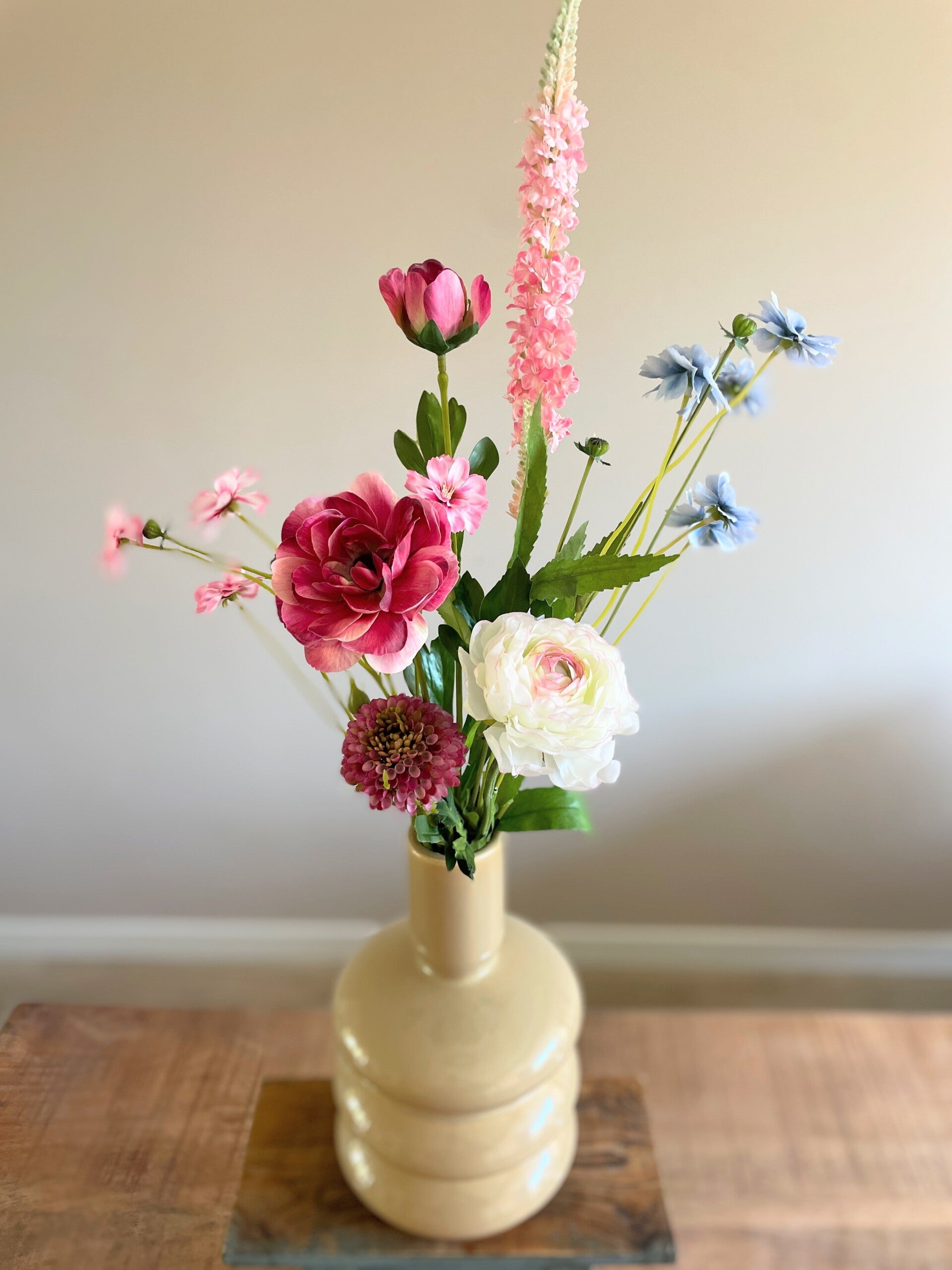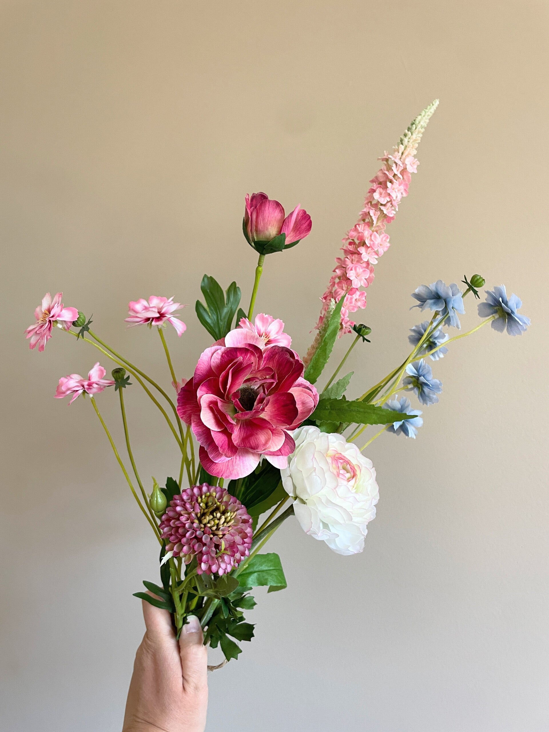 Een mooi plukboeket deze zijdebloemen. Geniet van de kleurtjes en de fijne bloemetjes