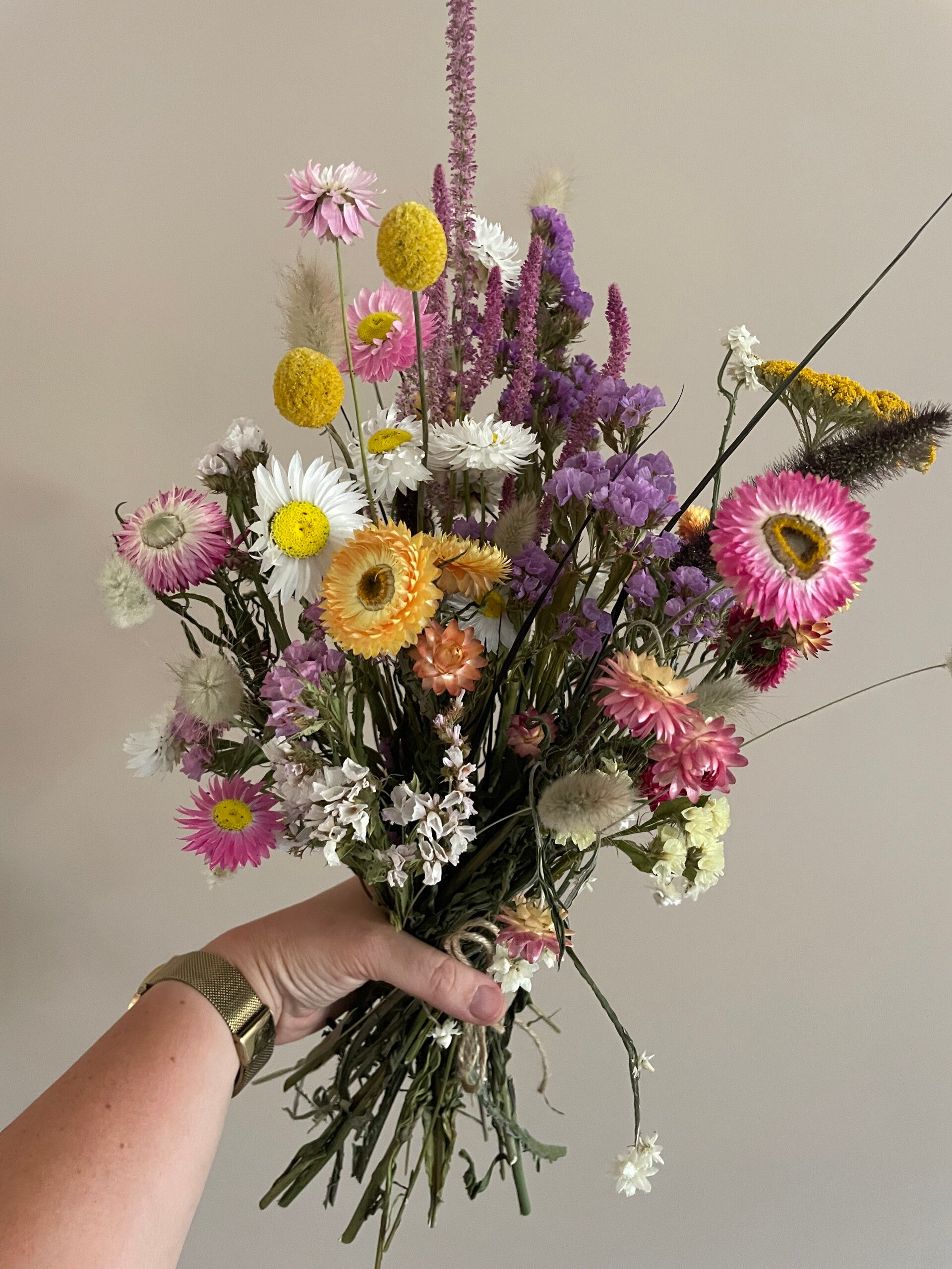 Prachtig boeket waar je heel veel plezier van heb! Dit boeket bestaat uit biologische droogbloemen, geplukt en gedroogd uit eigen pluktuin.