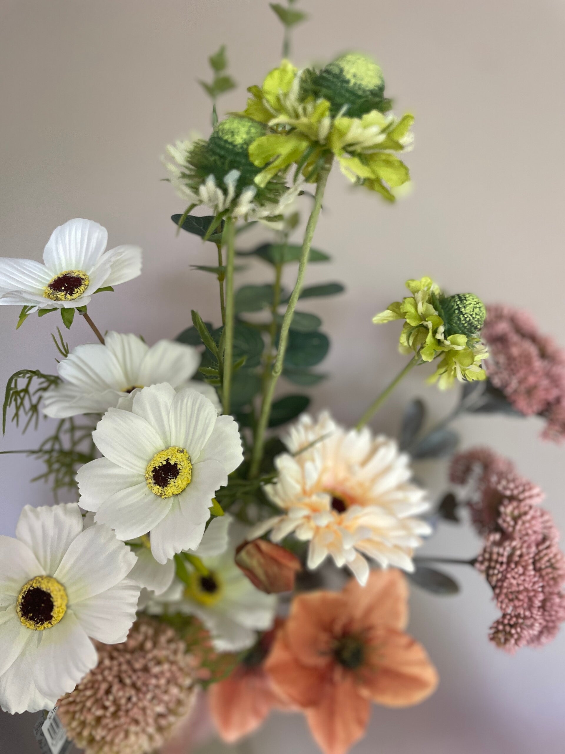 Prachtig boeket met mooie kleuren zoals wit, peachtinten en groen. Mooi rustig boeket waar je blij van wordt!