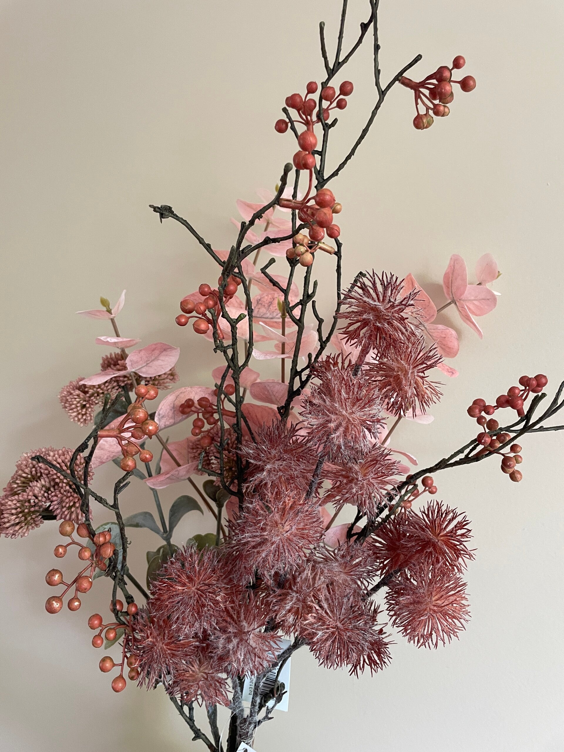 Een mooi boeket met kleuren waar je lang plezier van heb! Een boeket met eucalyptus takken in de kleur roze.