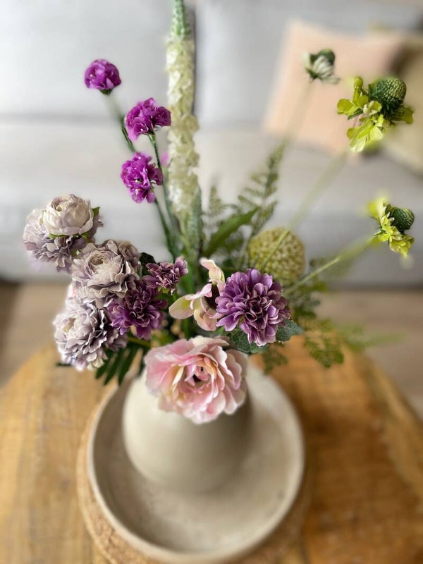 Een heel mooi zijde en kunst boeket. Het boeket heeft rustige tinten en past in elk interieur.
