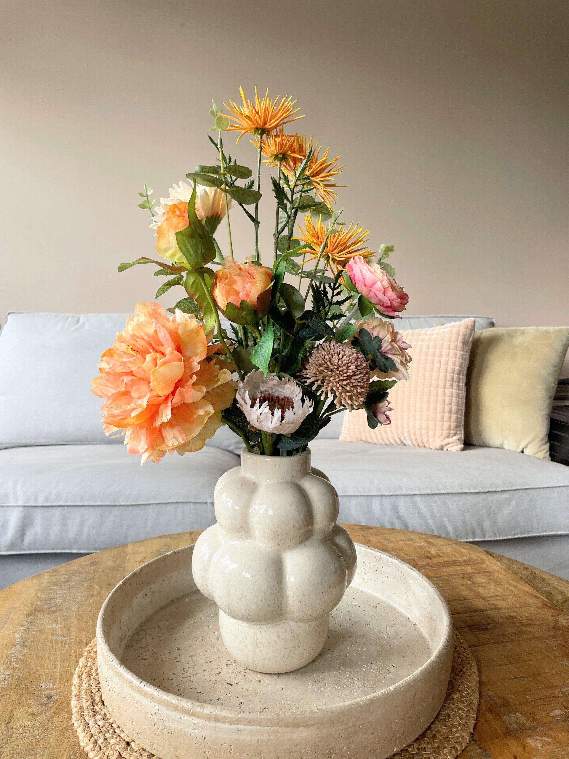 Het is een wat korter boeket en staat prachtig in vaas bubbels.