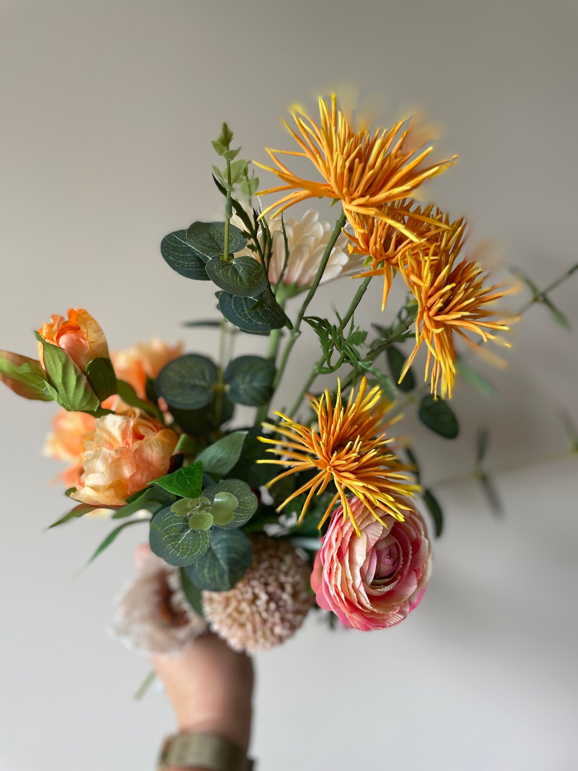 Een heel vrolijk en prachtig boeket! Deze kleuren zijn echt de trend en dit boeket is een mooie aanwinst in je huis.