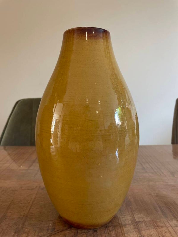 Een mooi vaasje in de kleur cognac. prachtige warme tinten en van mooi metaal.