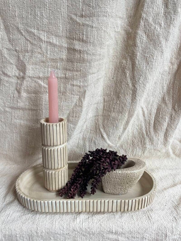 Een Prachtige kaarsenstandaard beige. Mooie aanvulling bij de collectie.