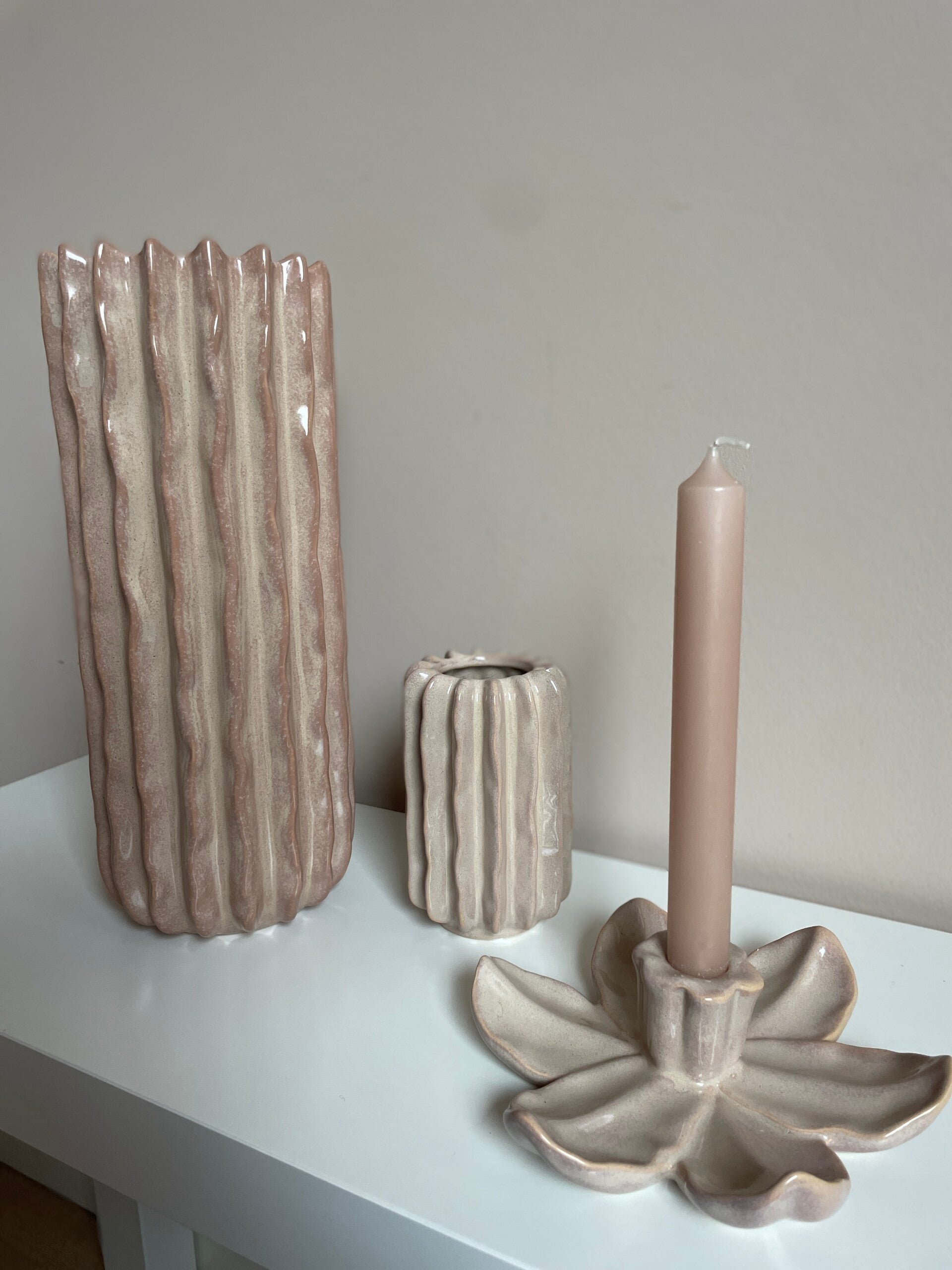 Aardewerk vaas Reed taupe
