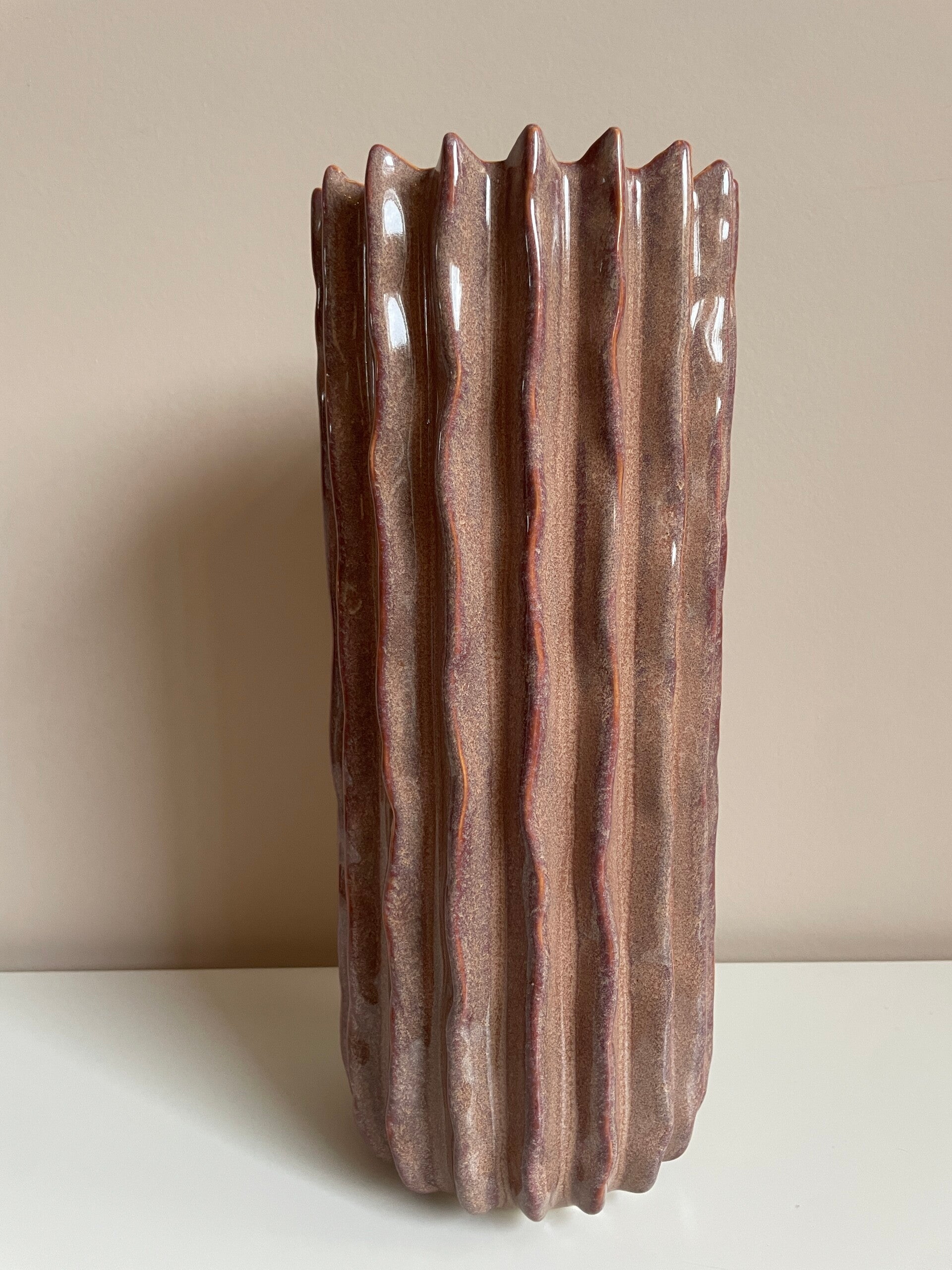 Prachtige hoge ribbel vaas.