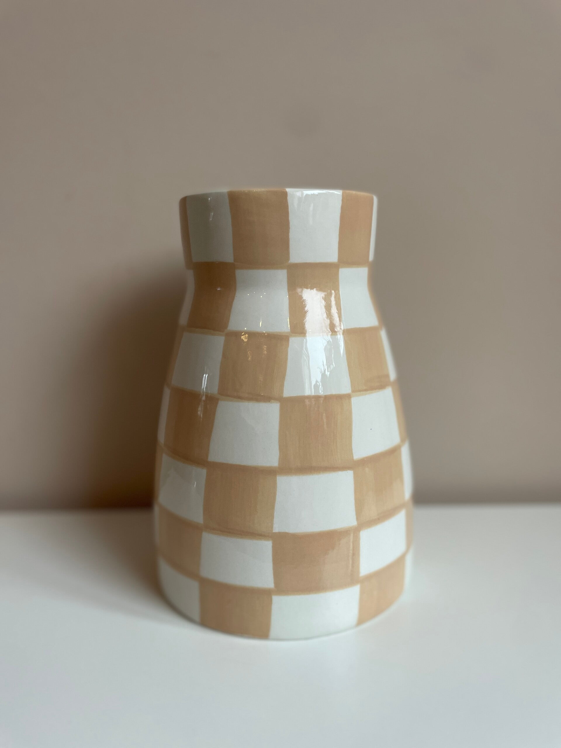 Een prachtige vaas, helemaal in de trend van nu. De beige en wit tinten staan in ieder interieur.