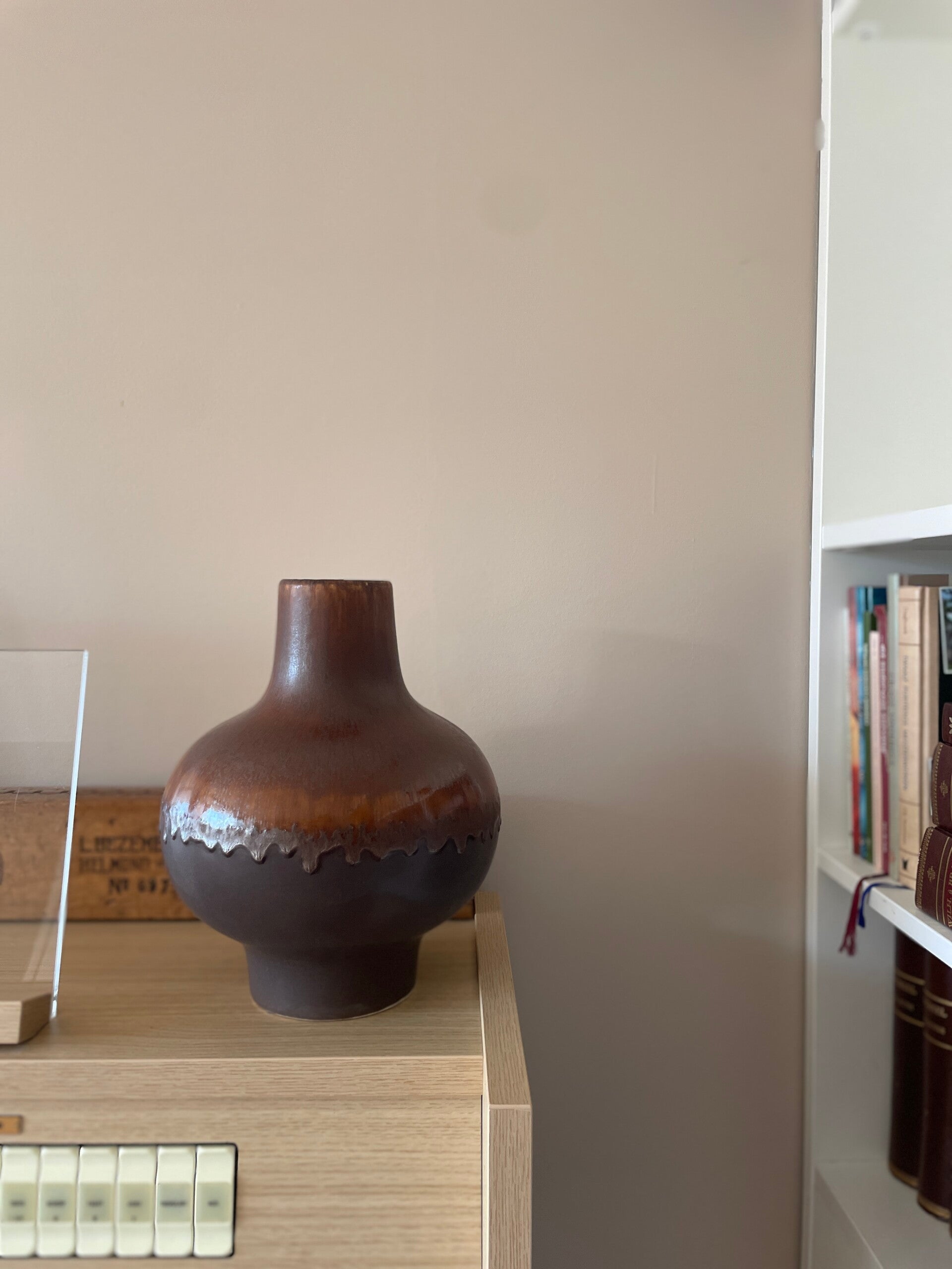 Een prachtige vaas met een unieke uitstraling. Mooie match met de andere bruine vazen. Afmeting: 25,6/30,5 cm
