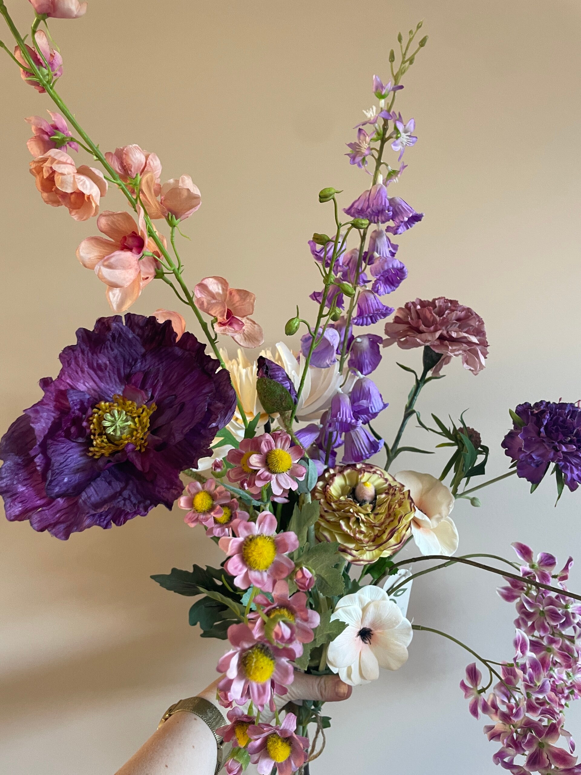 In het boeket zitten bloemen van o.a. HomeBound, Emerald en Silka